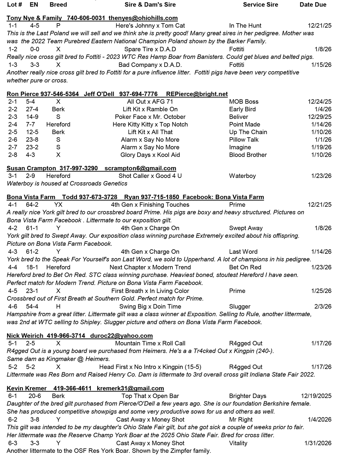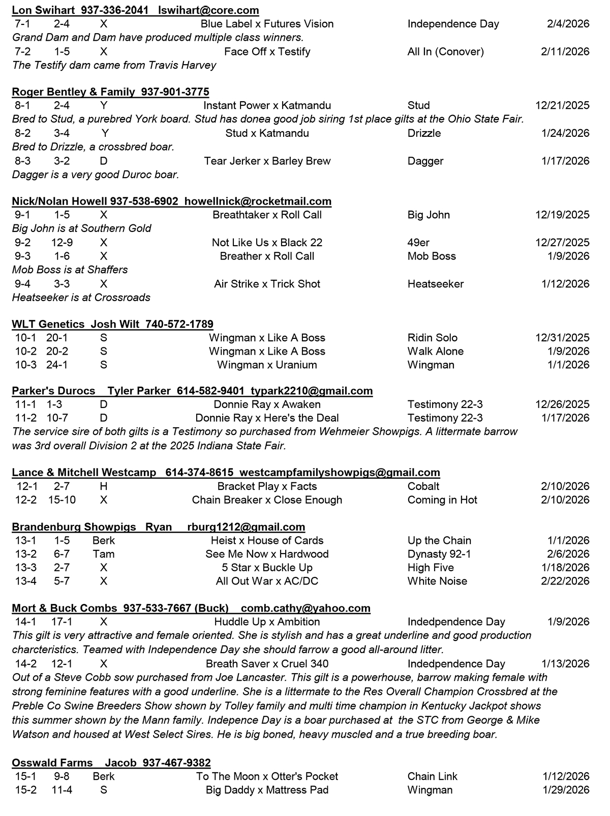 Auctioneer: Kevin Wendt | Sale Day Phone: 740-606-0031